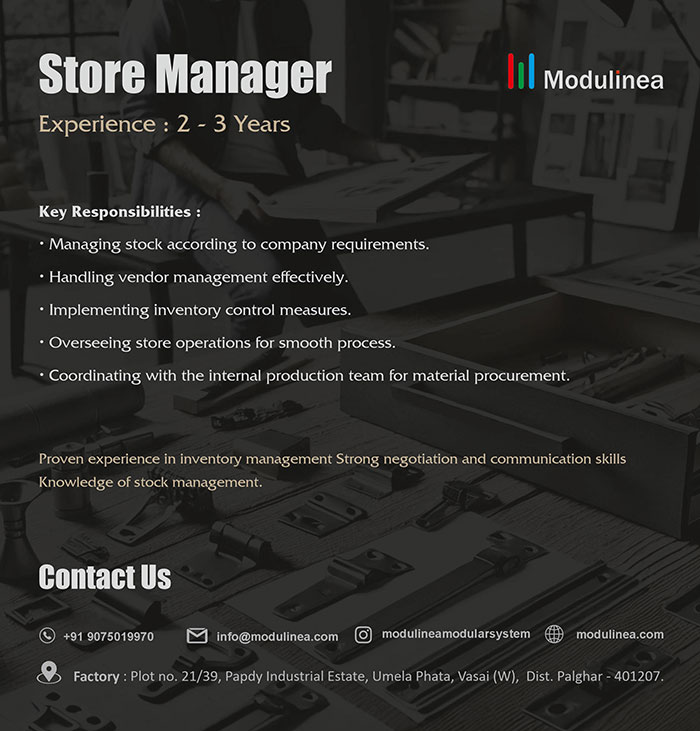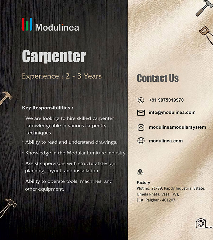 Note: - We will prefer candidates who have a minimum 2 years of experience in the Furniture Industry.